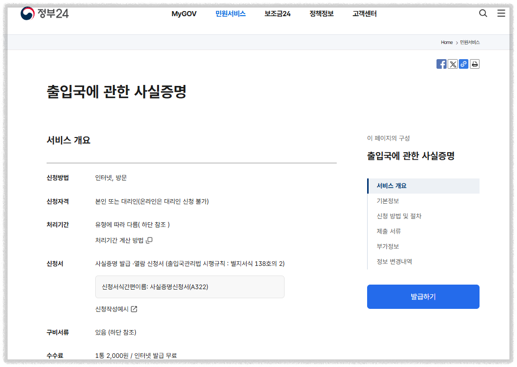 출입국사실증명서 인터넷 발급 준비물